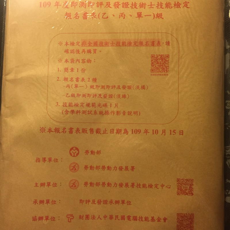即測即評即發證109年技術士技能檢定報名書表 乙 丙 單一 級 蝦皮購物