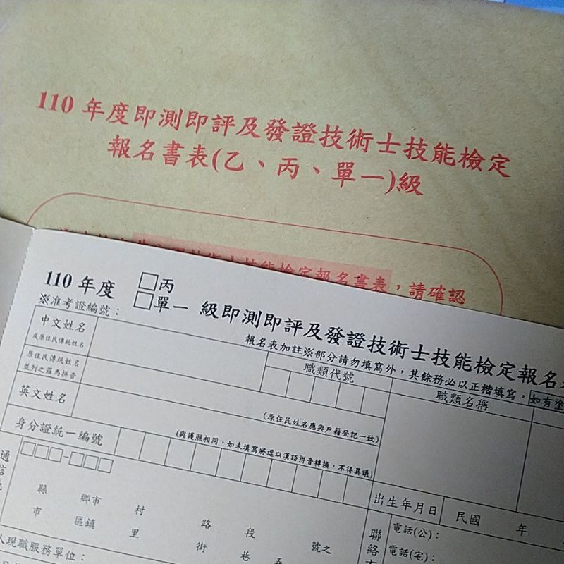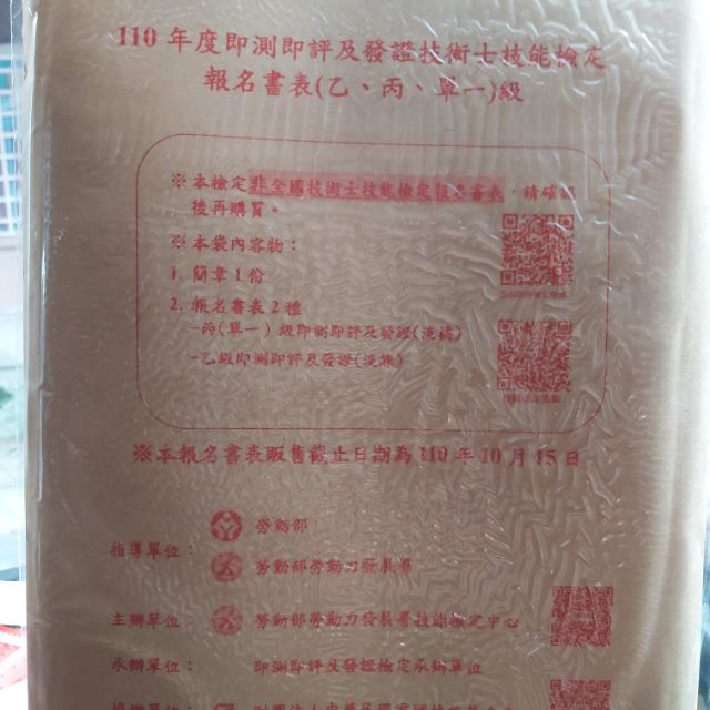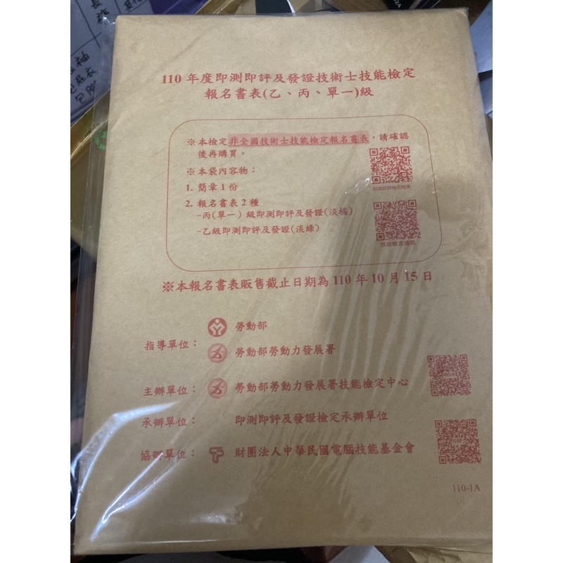 現貨 110年度即測即評及發證技術士技能檢定報名書表 蝦皮購物