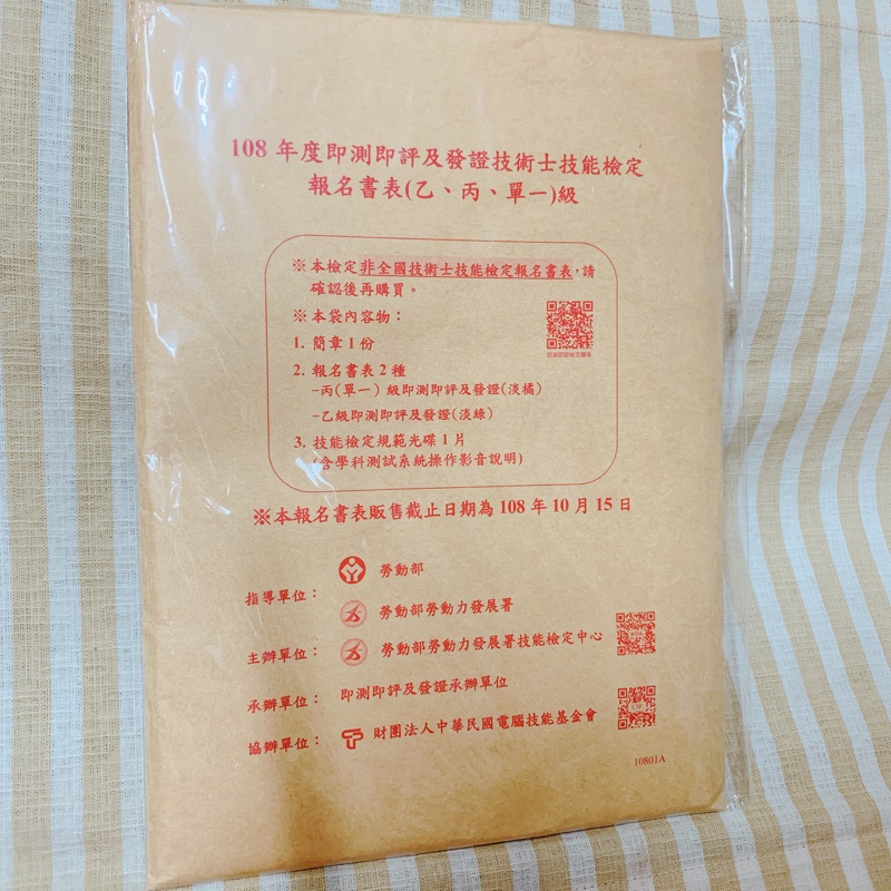 108年度即測即評及發證技術士技能檢定報名書表 乙 丙 單一 級 蝦皮購物