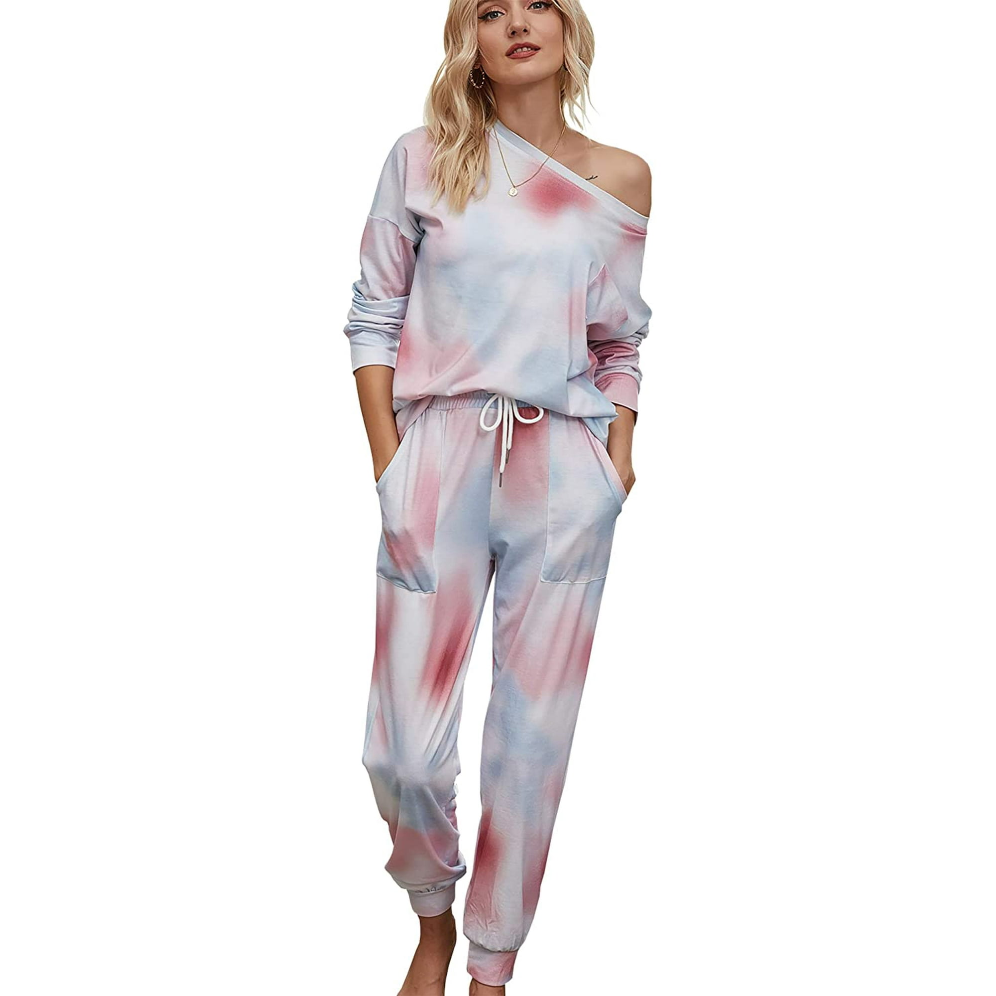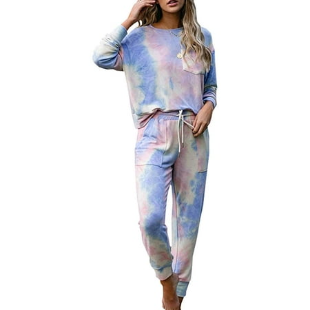 Womens Tie Dye Long Sleeve Pajamas Set Casual Pj Sets Long Nightwear Loungewear Walmart Canada